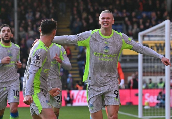 第68分钟,曼城右路快攻,谢尔基带球强行突破2,3人包夹冲到禁区前沿横传中路,福登禁区弧顶处接球稍作调整左脚大力低射,皮球直入球门左下死角,曼城2:0领先。第88分钟,水晶宫前场失误,2,3个人看着球未能形成默契,都没有去拿球,萨维尼奥机敏地将球抢走,一路加速突入禁区获得超级单刀机会,萨维尼奥过掉出击的亨德森,后者无奈将萨维尼奥扑倒,主裁果断吹罚点球。哈兰德操刀主罚一蹴而就梅开二度,曼城3:0锁定胜局。